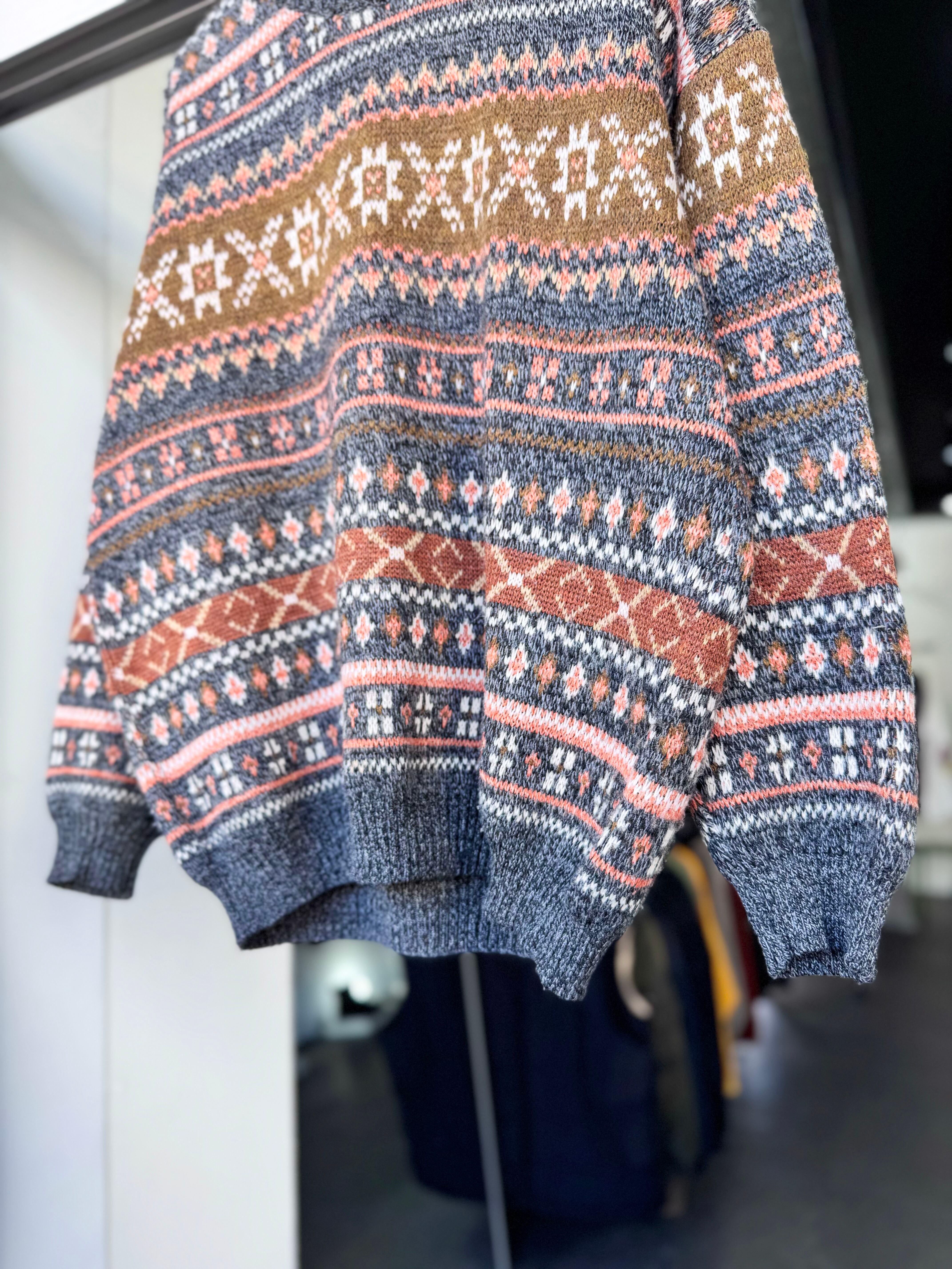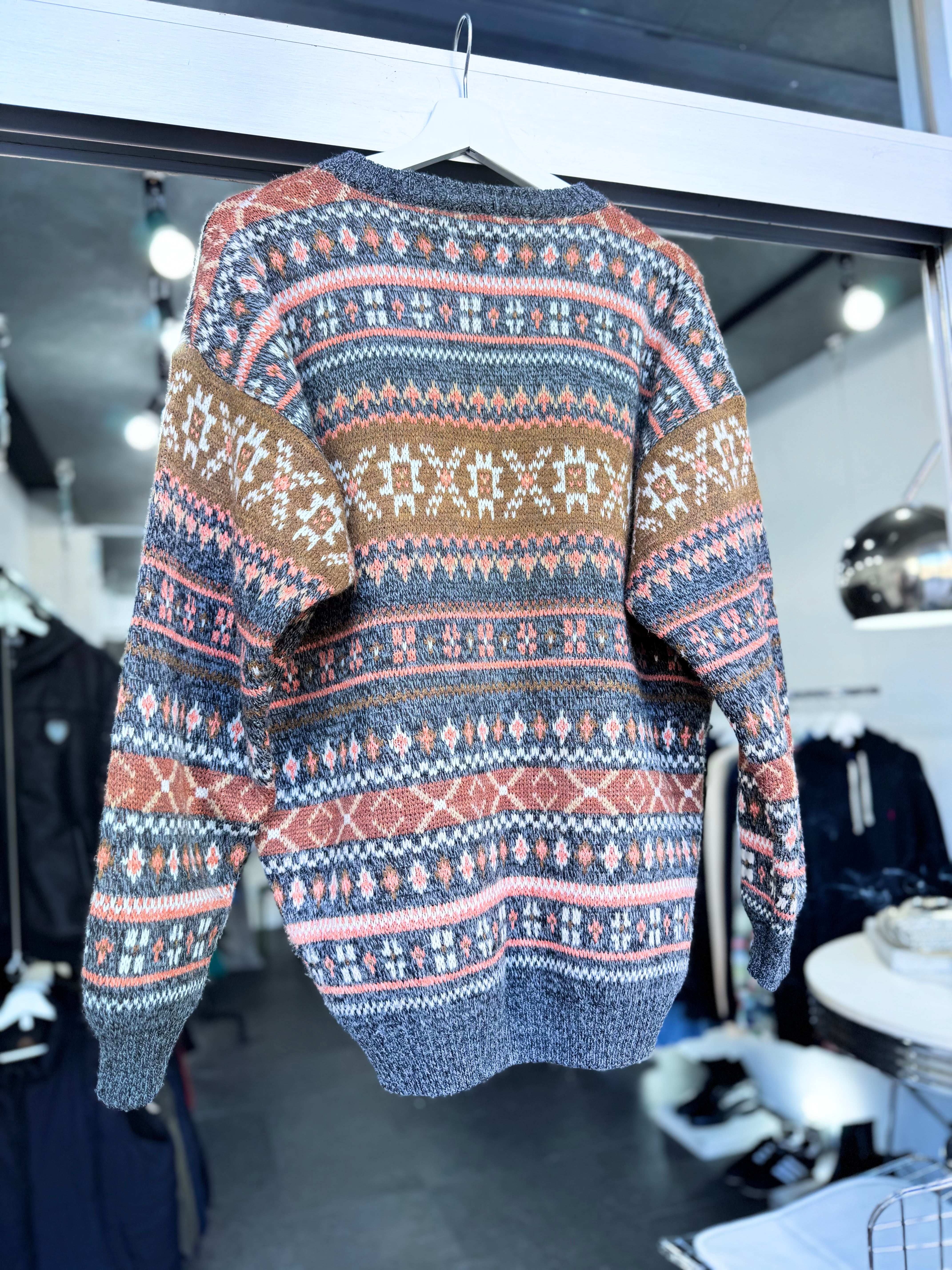 【XL】1980s MADE IN ITALY / Euro Design Wool Acrylic Nordic Pattern Knit / 20251046