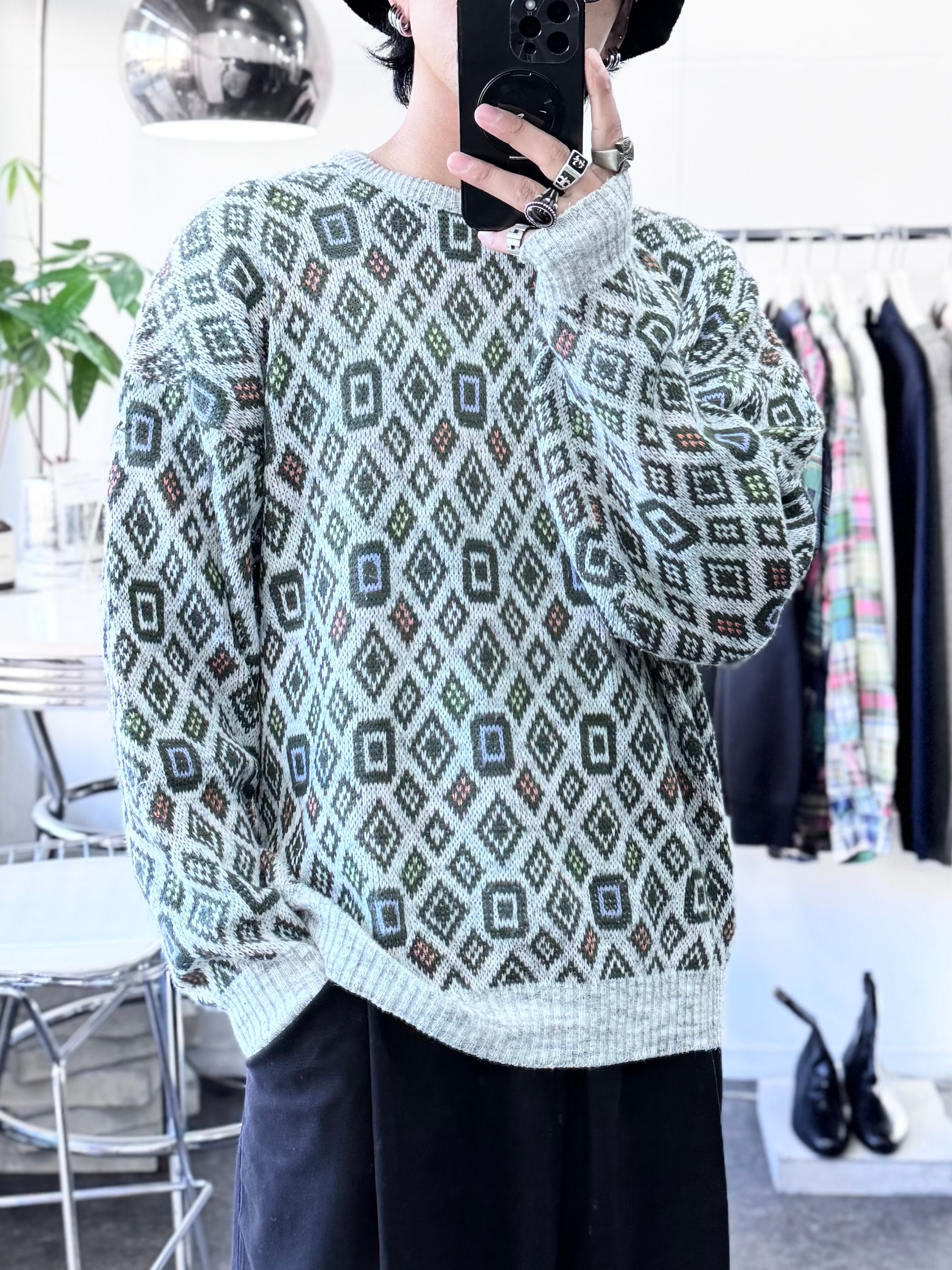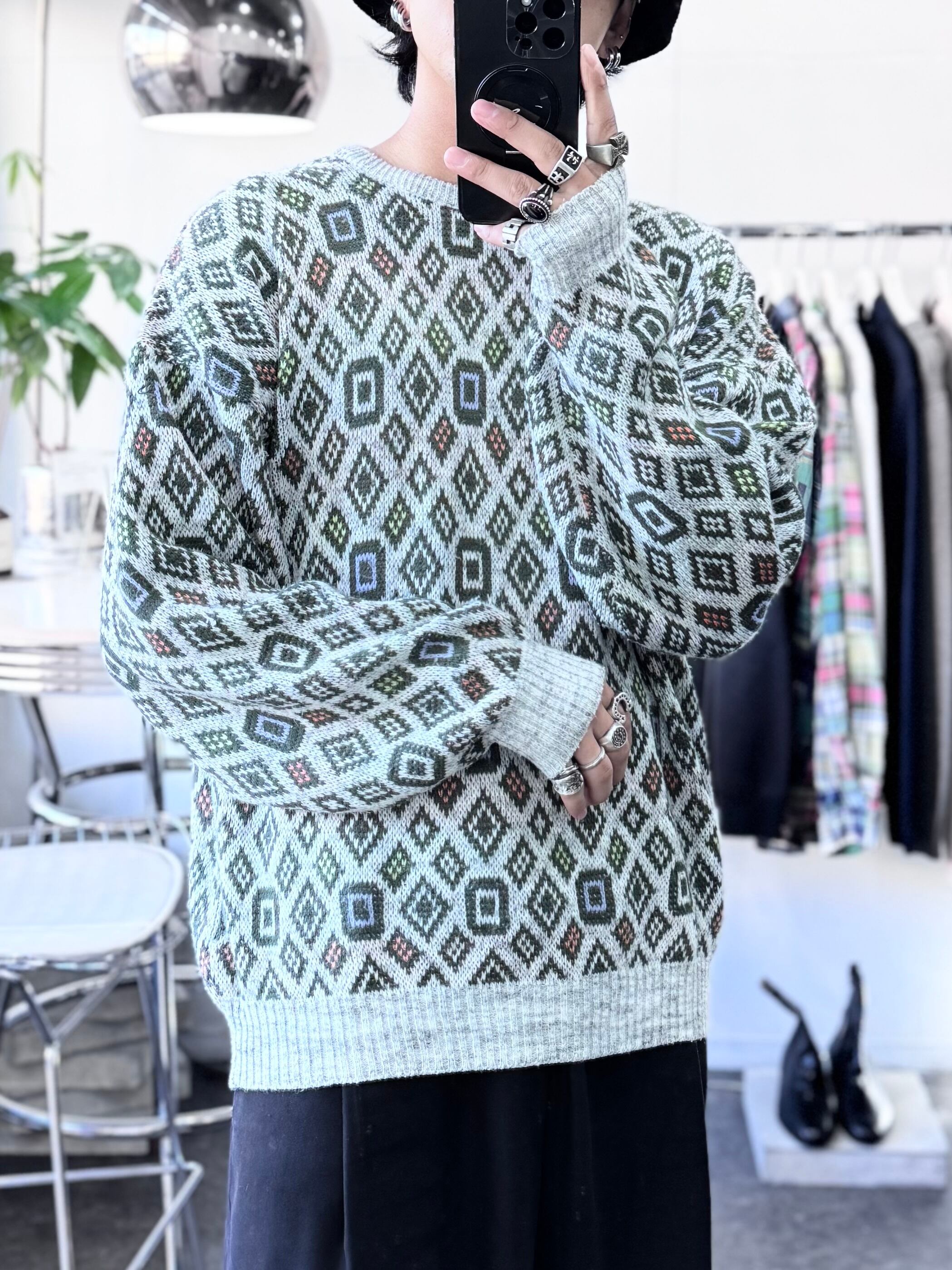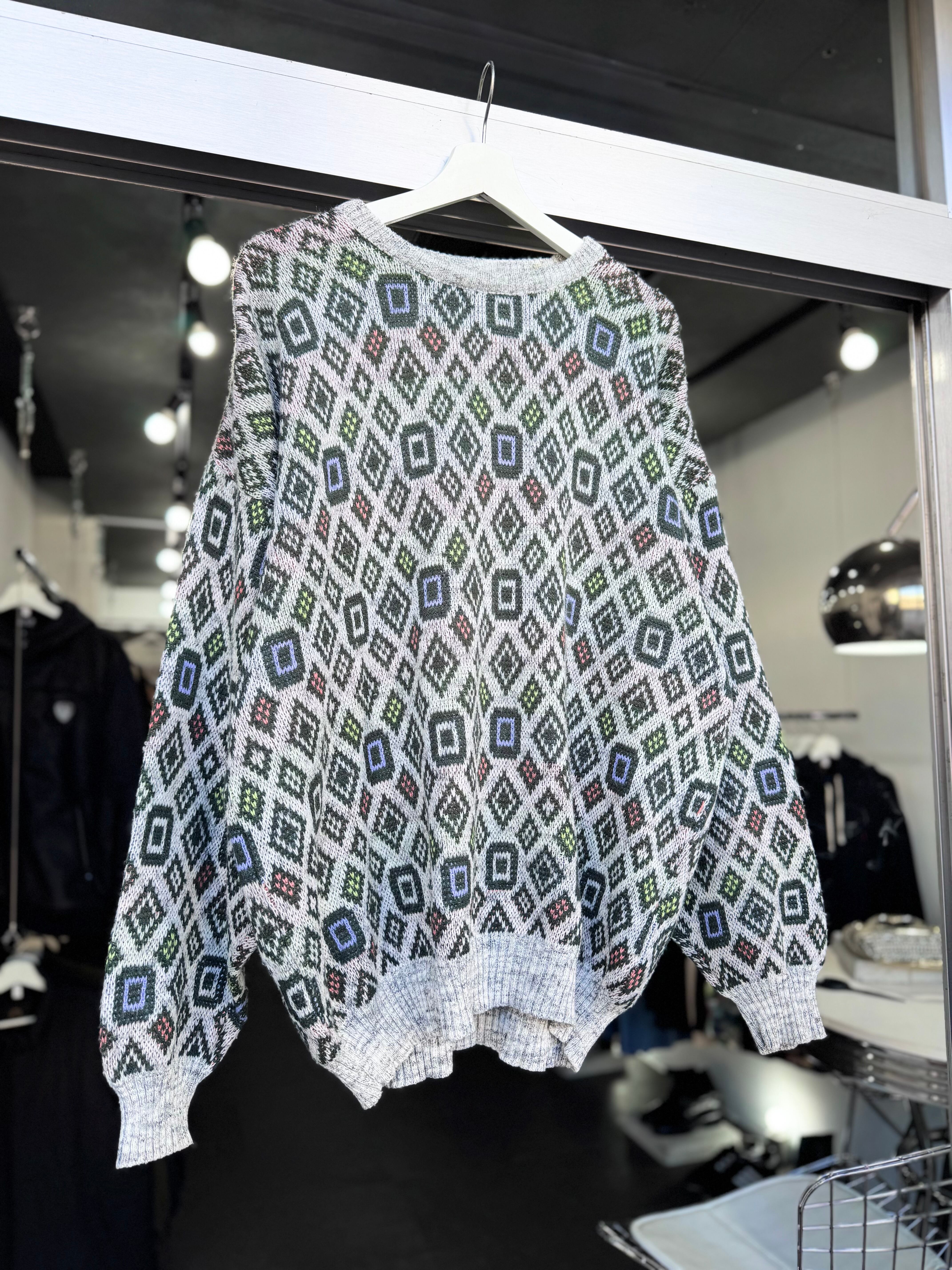 【XL】1980s MADE IN ITALY / 幾何学模様 Acrylic Pattern Knit / 20251057