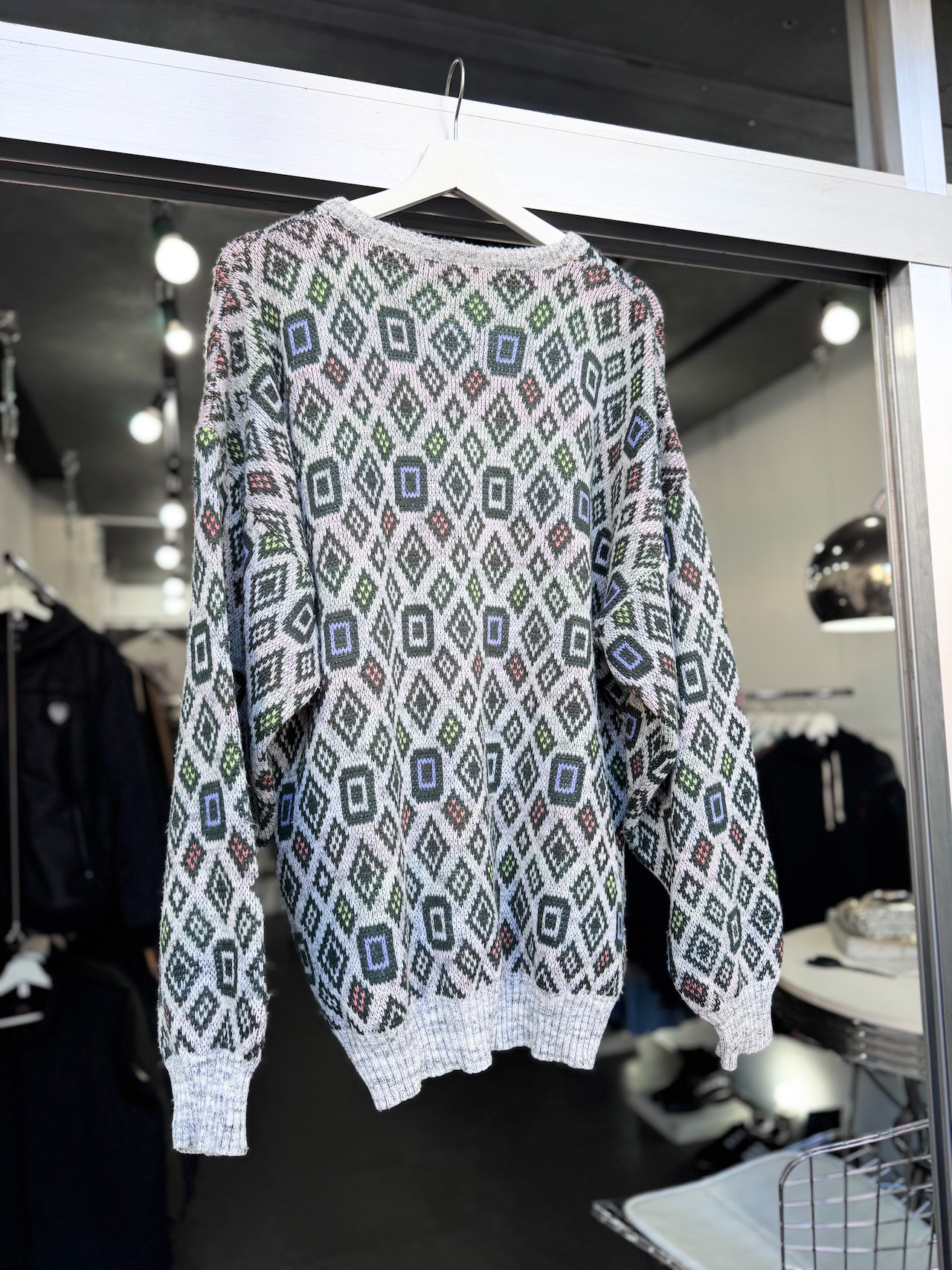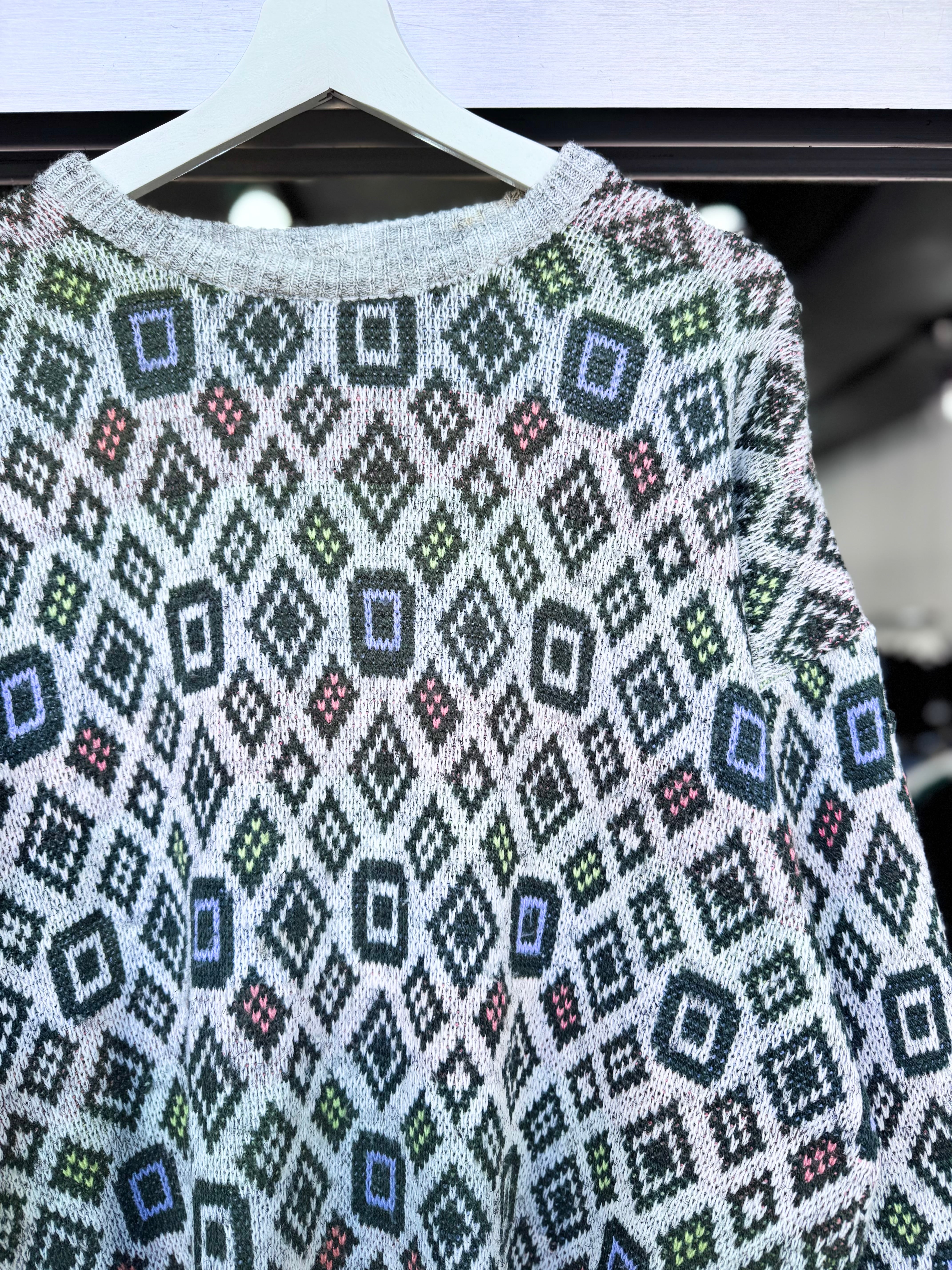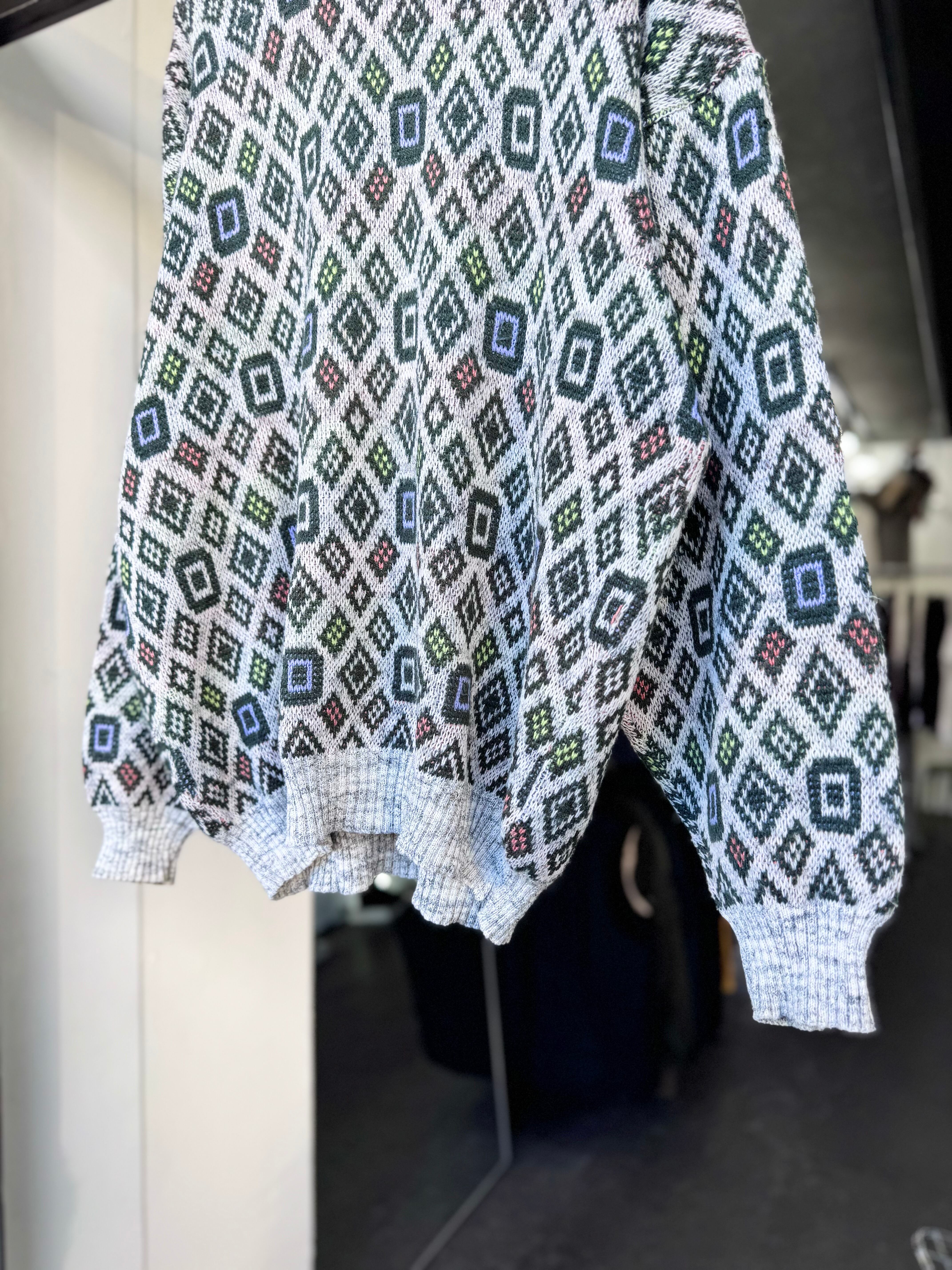 【XL】1980s MADE IN ITALY / 幾何学模様 Acrylic Pattern Knit / 20251057